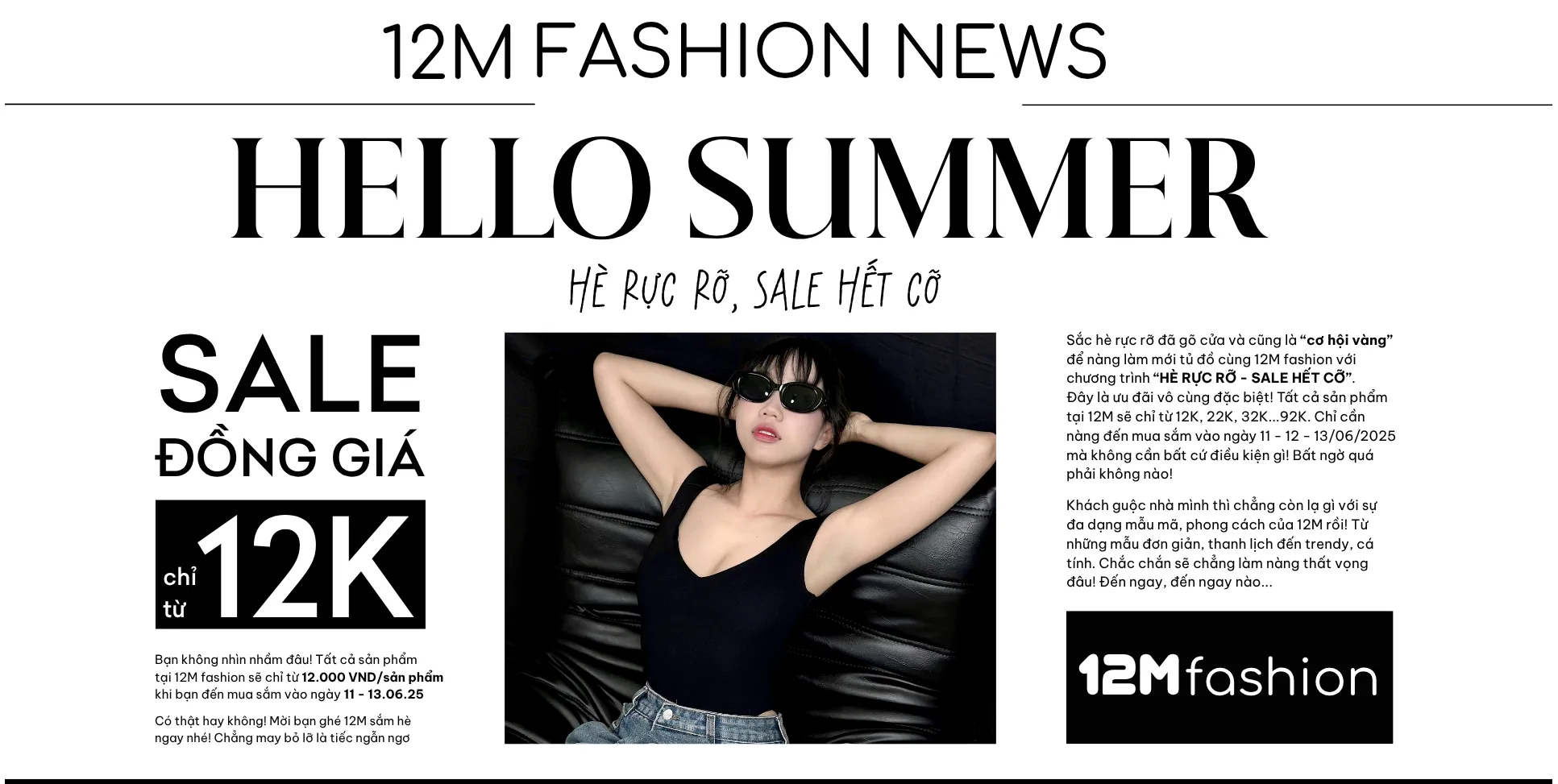 12M fashion là nhà bán lẻ chuyên cung cấp các sản phẩm thời trang chất lượng, mẫu mã đa dạng cùng giá thành hợp lí. Hoạt động từ 2016 đến nay, 12M fashion tự hào mang đến cho khách hàng những sản phẩm và dịch vụ tốt nhất!!! 12M fashion hướng đến xây dựng một thương hiệu phát triển vững mạnh trong lĩnh vực kinh doanh thời trang. Hoạt động với phương châm có lợi cho khách hàng, có ích cho xã hội. 12M sẽ cung cấp cho khách hàng những sản phẩm tốt nhất với 3 tiêu chí: dịch vụ tốt, chất lượng tốt, giá thành phù hợp. 12M fashion đồng hành cùng đội ngũ nhân viên năng động, sáng tạo và đầy nhiệt huyết. Chúng tôi không ngừng trao dồi, phát triển để cùng nhau mang lại cho khách hàng những sản phẩm và dịch vụ tốt nhất.